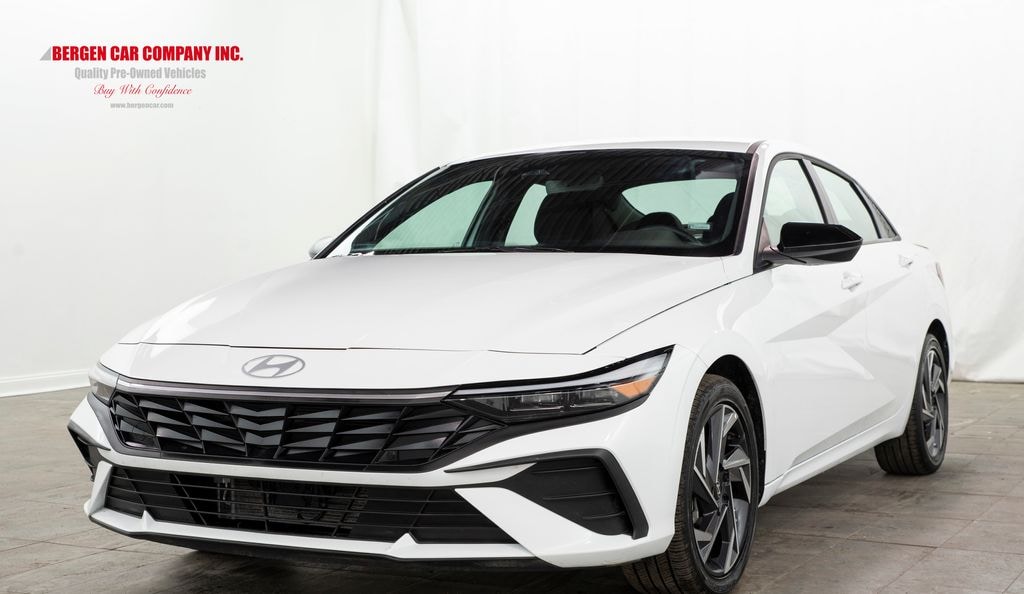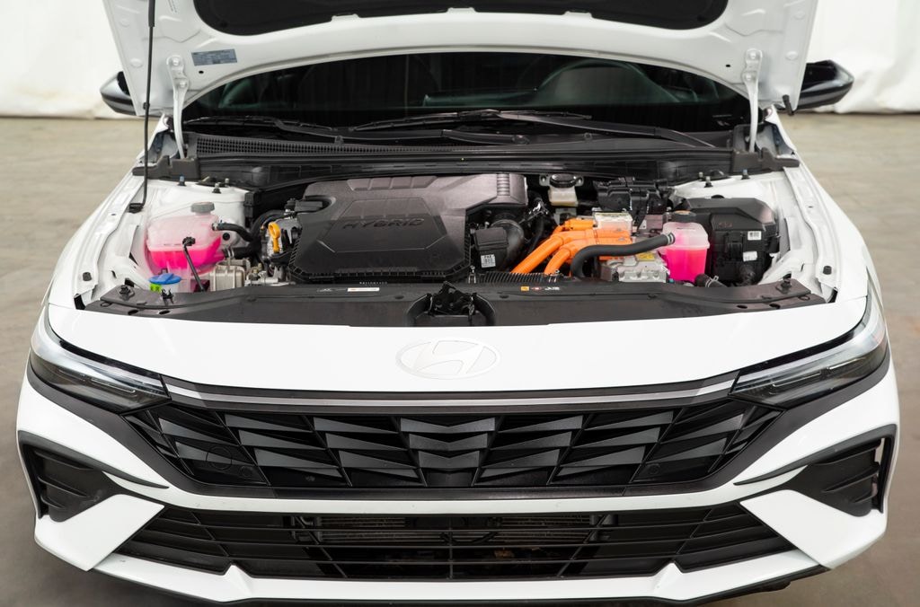 Bluetooth, Back Up Camera, Elantra Hybrid SEL Sport, 4D Sedan, I4, 6-Speed Dual Clutch, FWD, White, Black Cloth, 17" x 7.0J Alloy Wheels, Apple CarPlay & Android Auto, Automatic temperature control, Fully automatic headlights, Option Group 01, Remote keyless entry. White 2025 Hyundai Elantra Hybrid SEL Sport FWD 6-Speed Dual Clutch I4