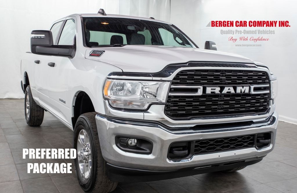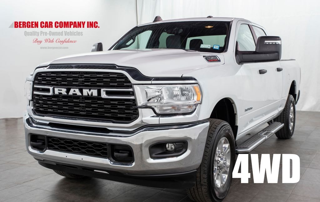 2500 Big Horn, 4D Crew Cab, 6.4L V8, 8-Speed Automatic, 4WD, Bright White Clearcoat, Diesel Gray/Black Cloth, 2 Way Rear Headrest Seat, 2nd Row In Floor Storage Bins, 4 Way Front Headrests, 40/20/40 Split Bench Seat, 4G LTE Wi-Fi Hot Spot, 8.4" Touchscreen Display, Apple CarPlay, Auto Power-Folding Mirrors, Big Horn IP Badge, Black Exterior Mirrors, Bluetooth Handsfree Phone & Audio, Center Hub, Connectivity - US/Canada, Dual Glove Boxes, Exterior Mirrors Courtesy Lamps, Exterior Mirrors w/Heating Element, Exterior Mirrors w/Supplemental Signals, Foam Bottle Insert (Door Trim Panel), Footwell Courtesy Lamp, For Details, Visit DriveUconnect.com, For More Info, Call 800-643-2112, Forward & Reverse Utility Lights, Front Armrest w/Cupholders, Front Center Seat Cushion Storage, Front Fog Lamps, Front Seat Back Map Pockets, Global Telematics Box Module (TBM), Glove Box Lamp, Google Android Auto, GPS Antenna Input, Integrated Center Stack Radio, Integrated Voice Command w/Bluetooth, Leather Wrapped Steering Wheel, Level 1 Equipment Group, Locking Lower Glove Box, Manual Adjust 4-Way Front Passenger Seat, Mirror Running Lights, Power 2-Way Driver Lumbar Adjust, Power Adjust 8-Way Driver Seat, Power Adjust Mirrors, Power Adjustable Convex Aux Mirrors, Power Heated Fold Telescope Mirrors, Power Telescoping Mirrors, Premium Cloth 40/20/40 Bench Seat, Quick Order Package 2GZ Big Horn, Radio: Uconnect 5 W w/8.4" Display (A62), Rear 60/40 Folding Seat, Rear Dome w/On/Off Switch Lamp, Remote USB Port - Charge Only, Selectable Tire Fill Alert, SiriusXM Radio Service, SiriusXM Satellite Radio, Steering Wheel Mounted Audio Controls, Storage Tray, Wheels: 18" x 8.0" Polished Aluminum. Bright White Clearcoat 2024 Ram 2500 Big Horn 4WD 8-Speed Automatic 6.4L V8
